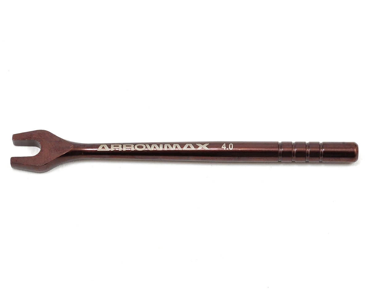 This is the Arrowmax 4mm V2 Turnbuckle Wrench. This turnbuckle wrench is a great option for cars with 4mm size links. Made from high-quality spring steel, the tool is lightweight and strong, and the compact size makes storage easy.