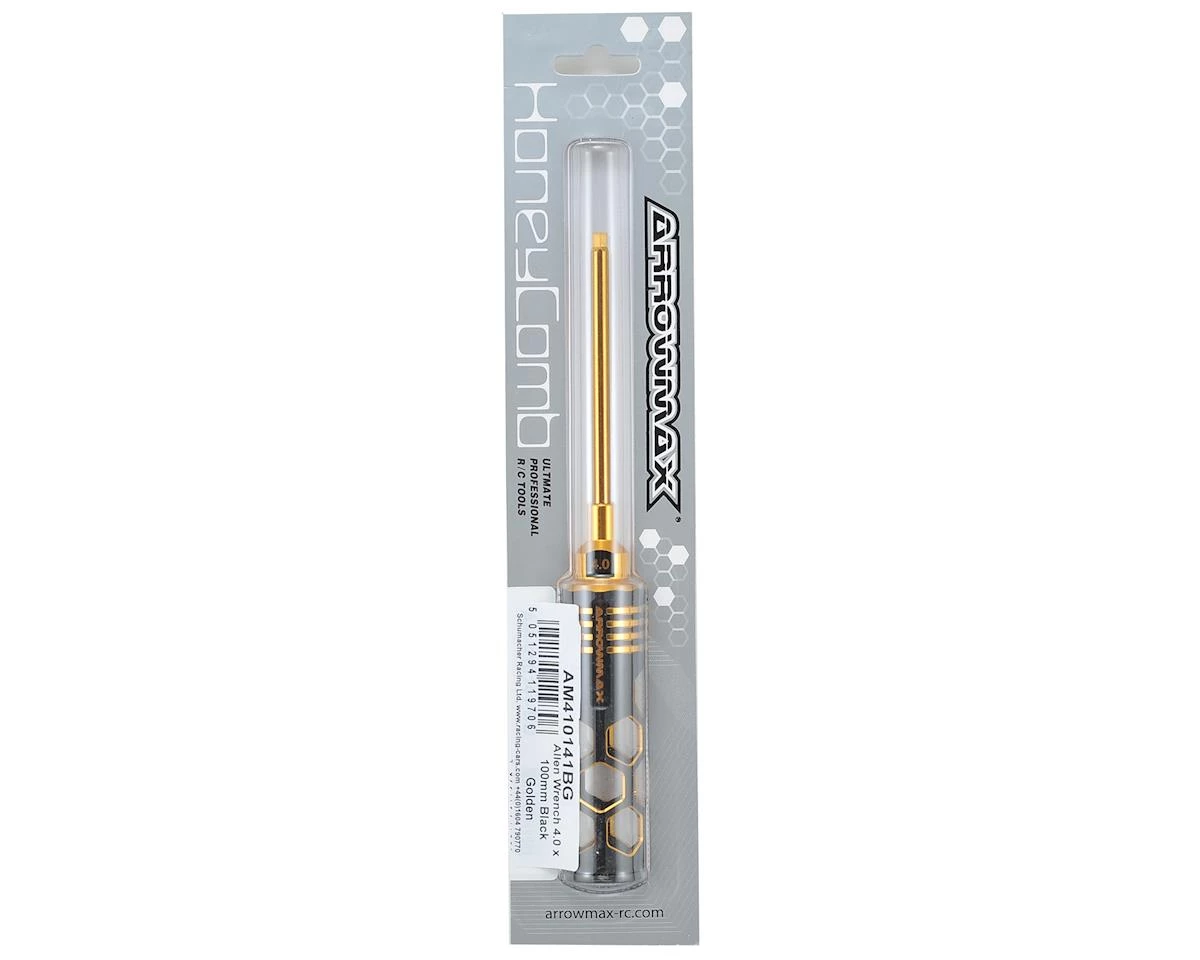 This is the Arrowmax Limited Edition Metric 4mm Allen Wrench. This tool features an eye-catching hollow honeycomb handle design with a rich black and gold color finish. Spring steel titanium nitride tips and a bottom cover provide a more comfortable, controllable and lighter feeling.Â