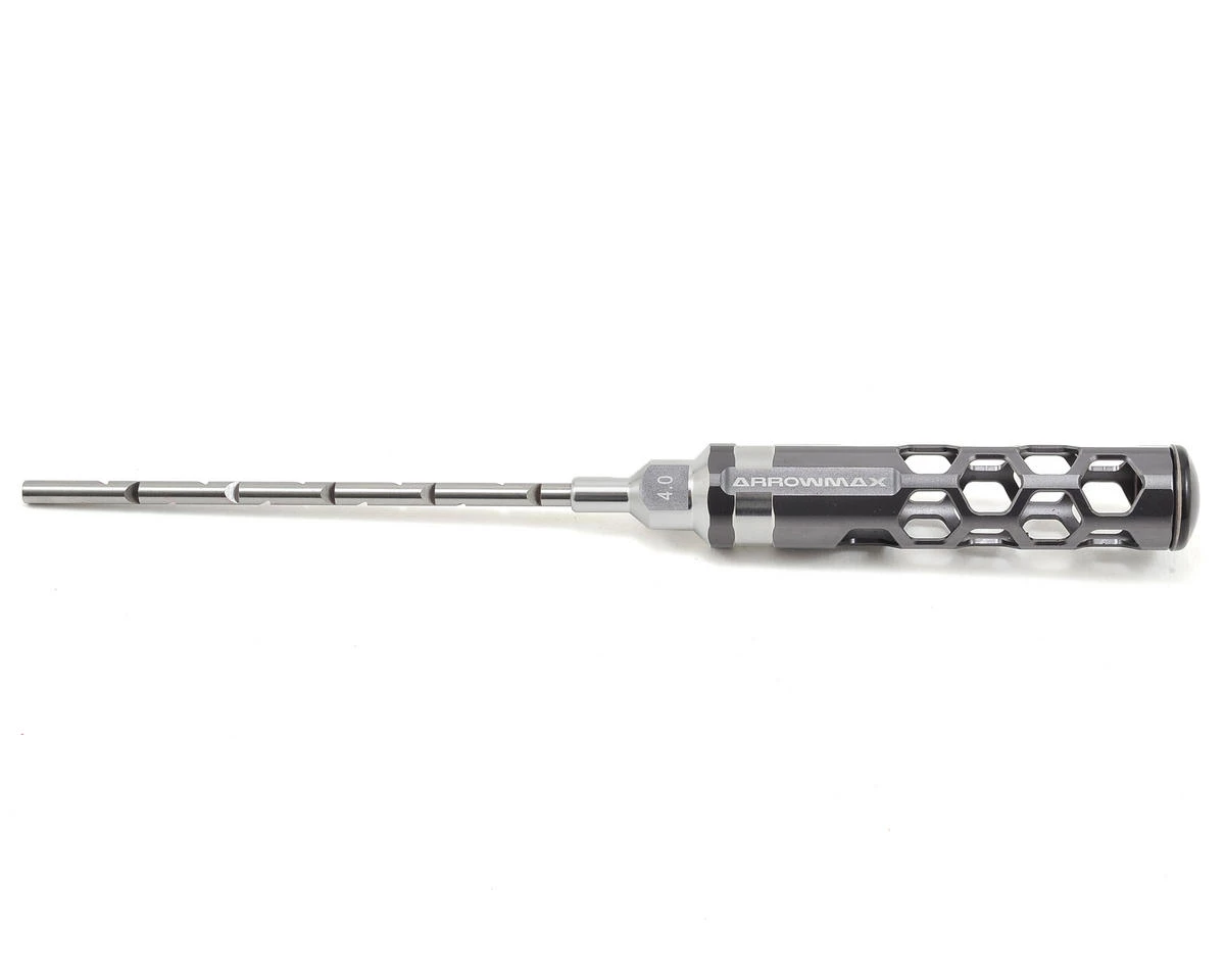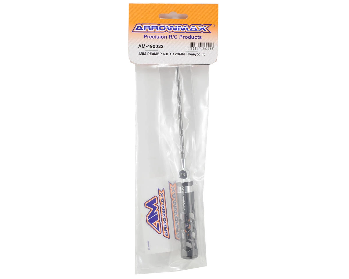 s is an Arrowmax Honeycomb 4.0mm Arm Reamer. Arrowmax tools feature an eye-catching, light weight, hollow honeycomb handle design. This tool is perfect for precisely resizing plastic holes without creating excessive slop, allowing you to build perfect free-moving suspension components. When combined with the lexan cap, you get a comfortable, controllable and lighter feeling tool that makes wrenching easier.