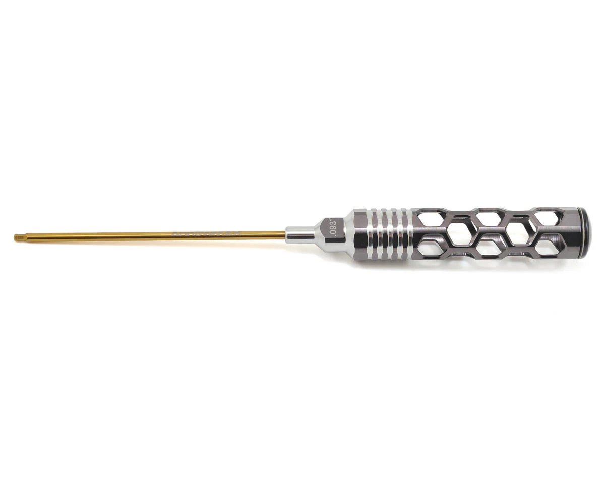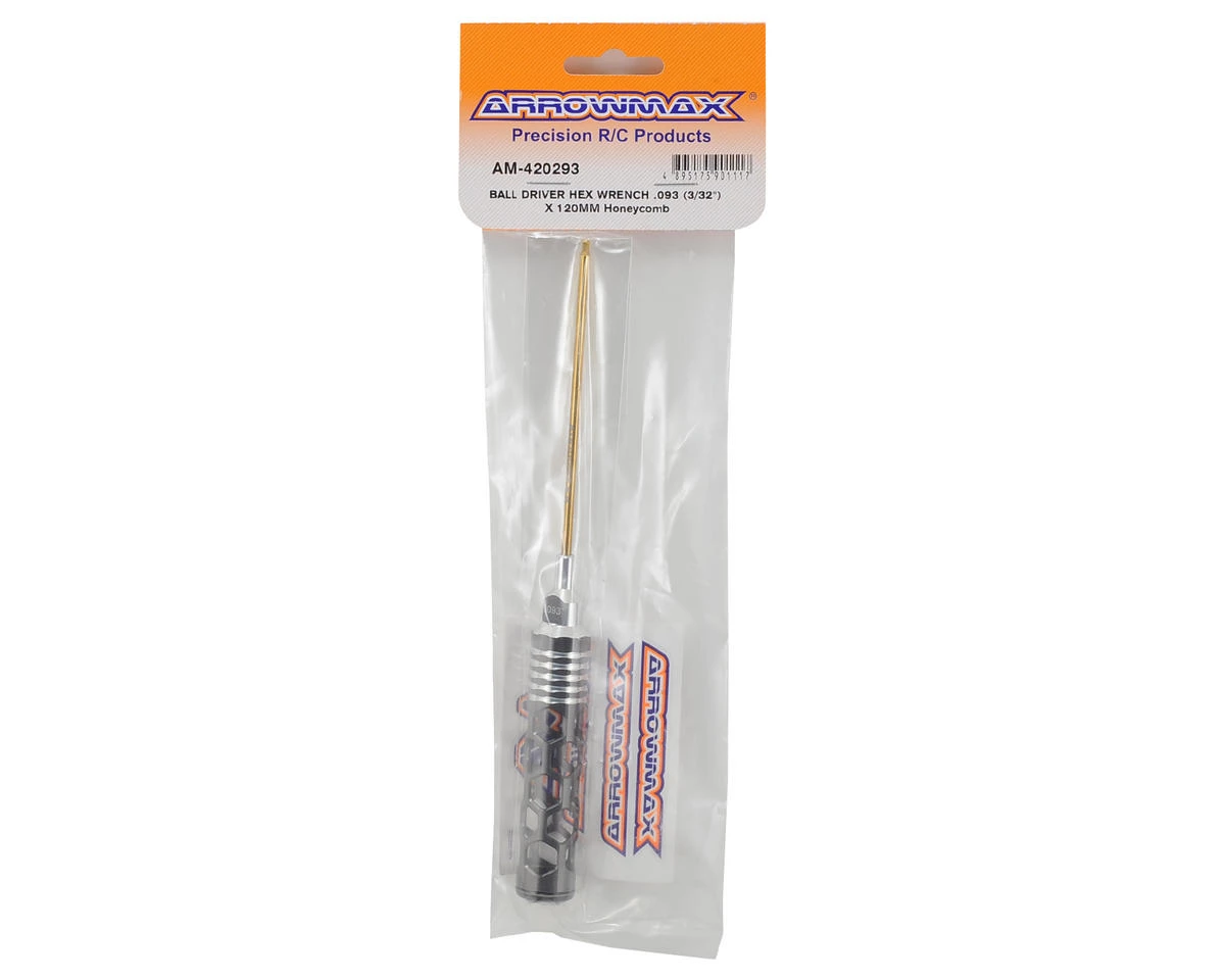 This is an Arrowmax 3/32″ Honeycomb Ball End Hex Wrench. Arrowmax tools feature an eye-catching, light weight, hollow honeycomb handle design. The 120mm long tips are spring steel and titanium nitride coated for durability. When combined with the lexan cap, you get a comfortable, controllable and lighter feeling tool that makes wrenching easier.