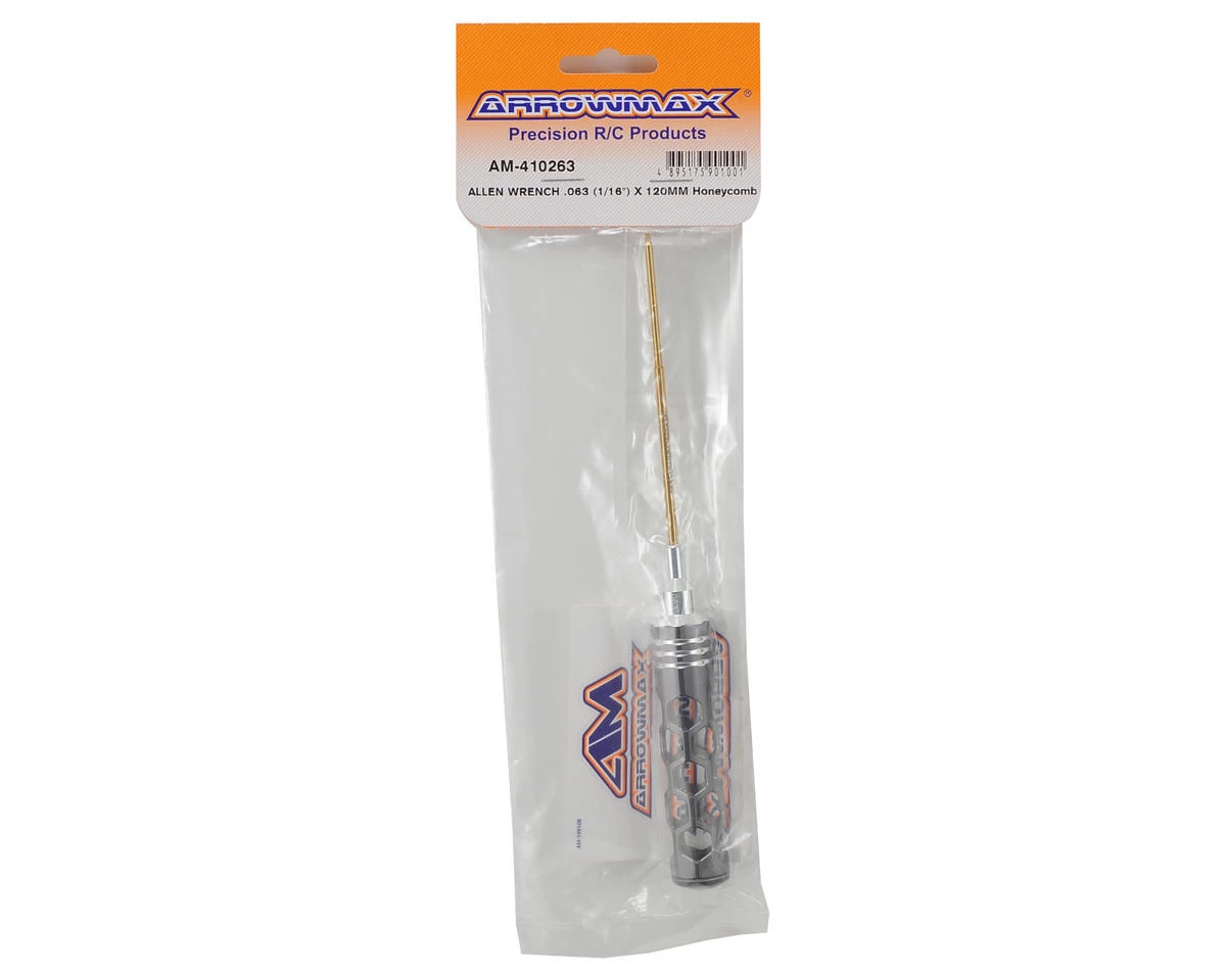 This is an Arrowmax 1/16″ Honeycomb Hex Wrench. Arrowmax tools feature an eye-catching, light weight, hollow honeycomb handle design. The 120mm long tips are spring steel and titanium nitride coated for durability. When combined with the lexan cap, you get a comfortable, controllable and lighter feeling tool that makes wrenching easier.