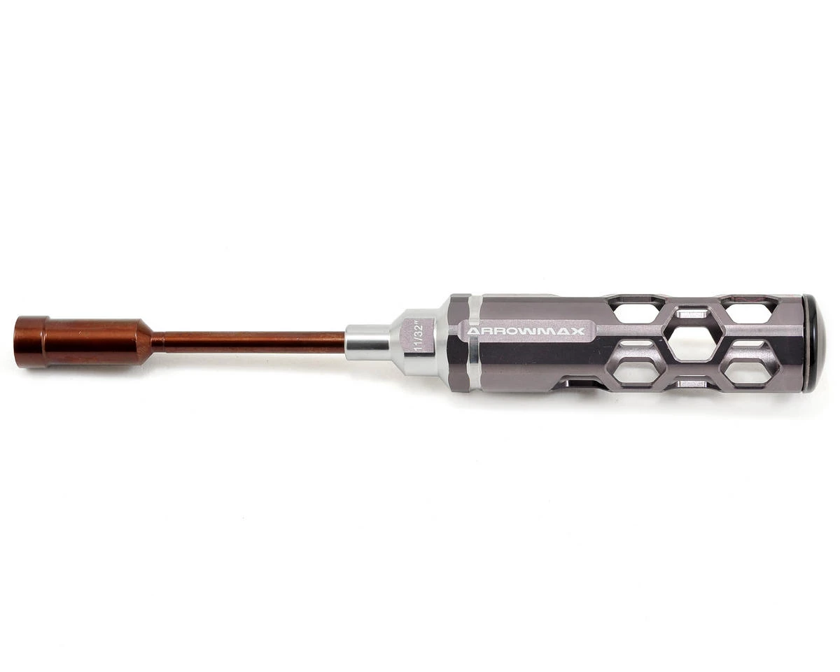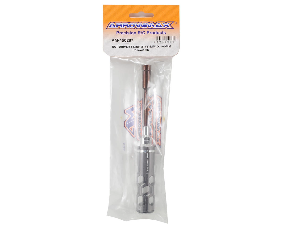 This is an Arrowmax 11/32″ Honeycomb Nut Driver. Arrowmax tools feature an eye-catching, light weight, hollow honeycomb handle design. The 100mm long tips are spring steel and titanium nitride coated for durability. When combined with the lexan cap, you get a comfortable, controllable and lighter feeling tool that makes wrenching easier.