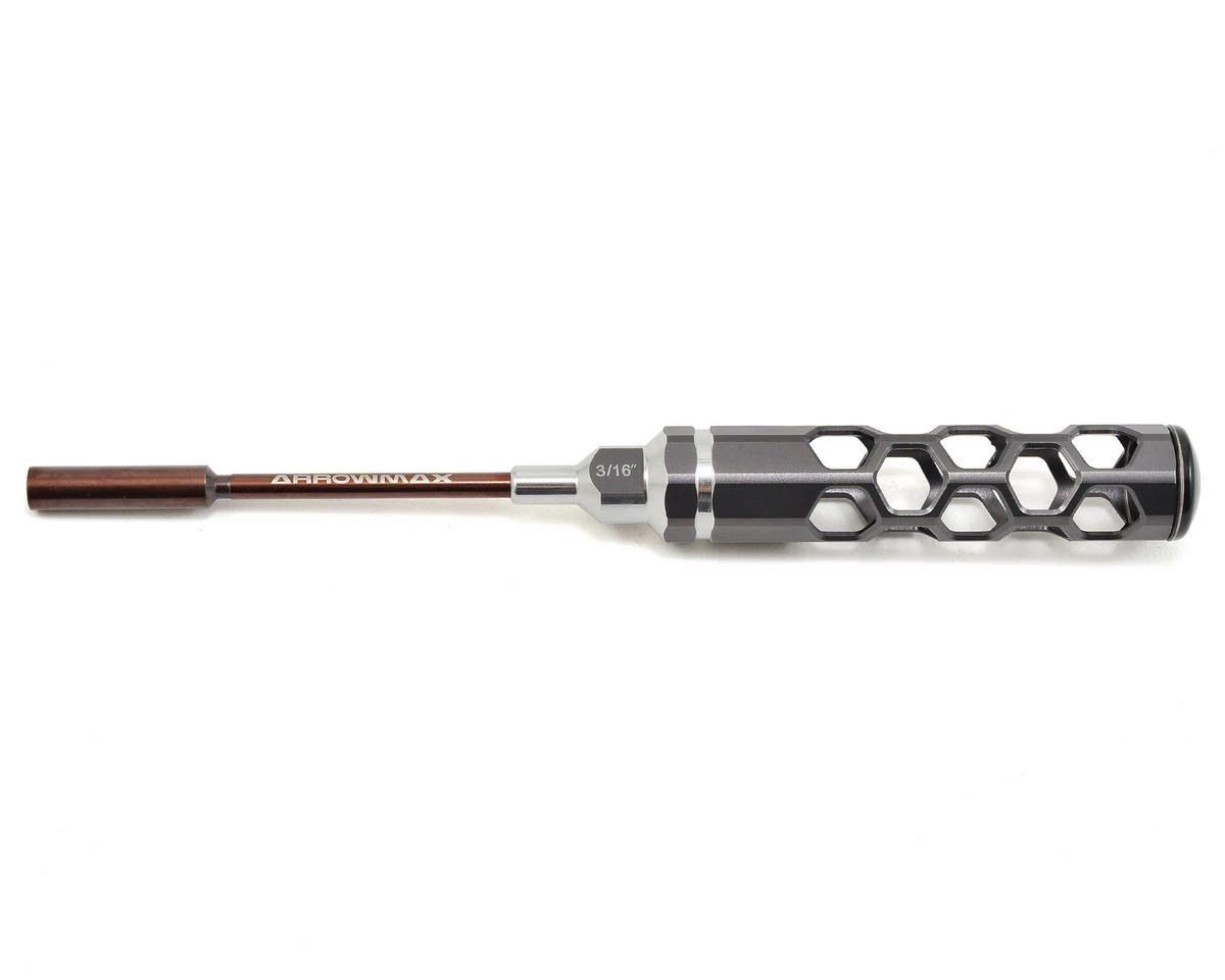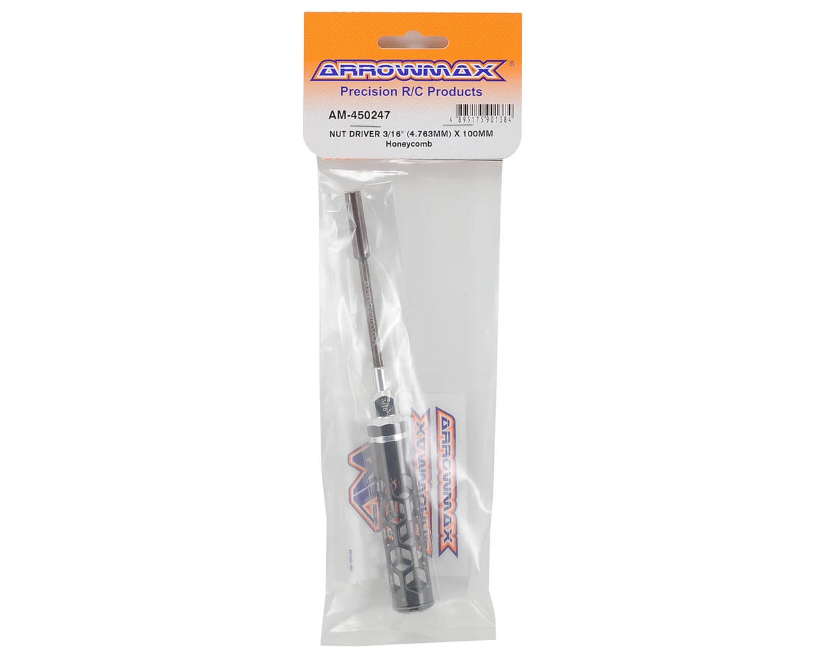 This is an Arrowmax 3/16″ Honeycomb Nut Driver. Arrowmax tools feature an eye-catching, light weight, hollow honeycomb handle design. The 100mm long tips are spring steel and titanium nitride coated for durability. When combined with the lexan cap, you get a comfortable, controllable and lighter feeling tool that makes wrenching easier.
