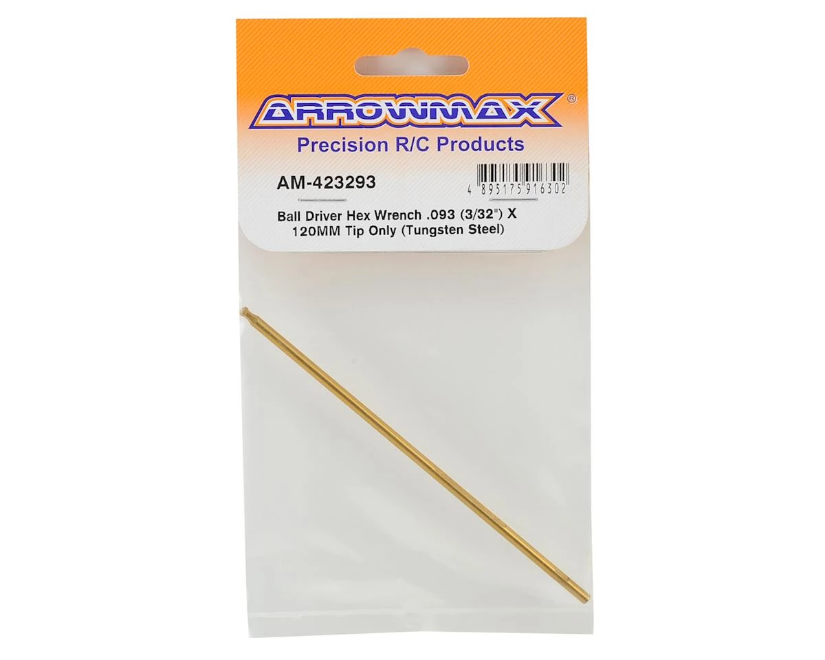 Arrowmax Tungsten Steel Replacement Hex Wrench Tip. This tip is machined from tungsten steel and has been ti-nitride coated for durability. Tip features a 120mm long shaft, with a 3/32″ tip.