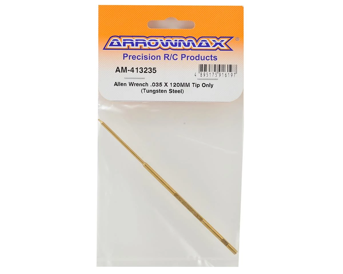 Arrowmax Tungsten Steel Replacement Hex Wrench Tip. This tip is machined from tungsten steel and has been ti-nitride coated for durability. Tip features a 120mm long shaft, with a .035″ tip.