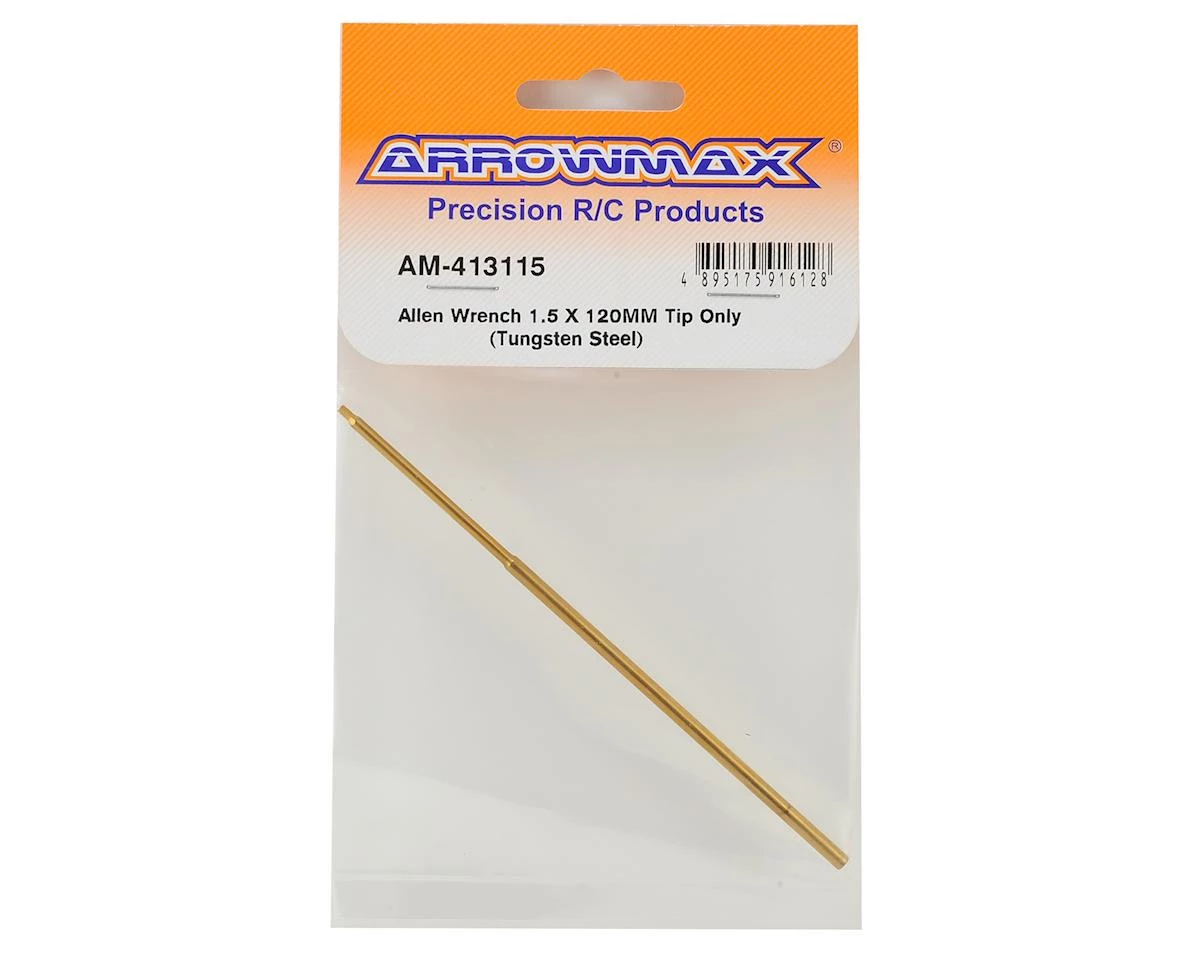 Arrowmax Tungsten Steel Replacement Hex Wrench Tip. This tip is machined from tungsten steel and has been ti-nitride coated for durability. Tip features a 120mm long shaft, with a 1.5mm tip.