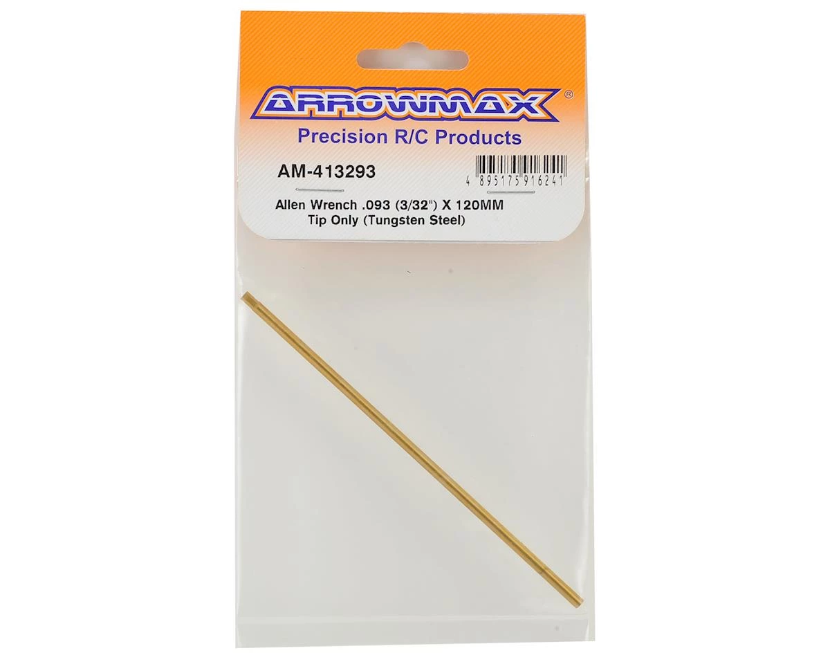 Arrowmax Tungsten Steel Replacement Hex Wrench Tip. This tip is machined from tungsten steel and has been ti-nitride coated for durability. Tip features a 120mm long shaft, with a 3/32″ tip.Â