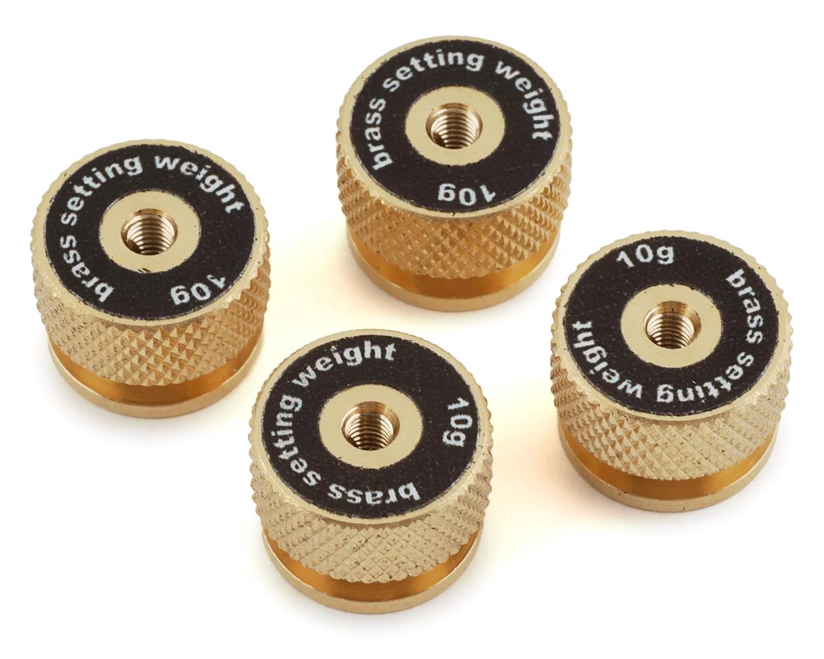 These Wrap Up Next Brass Weights come four to a pack, and each weigh in at 10 grams. With the 3mm threaded center, you can easily add weights to your vehicle and secure them in place – making chassis tuning quick and easy.