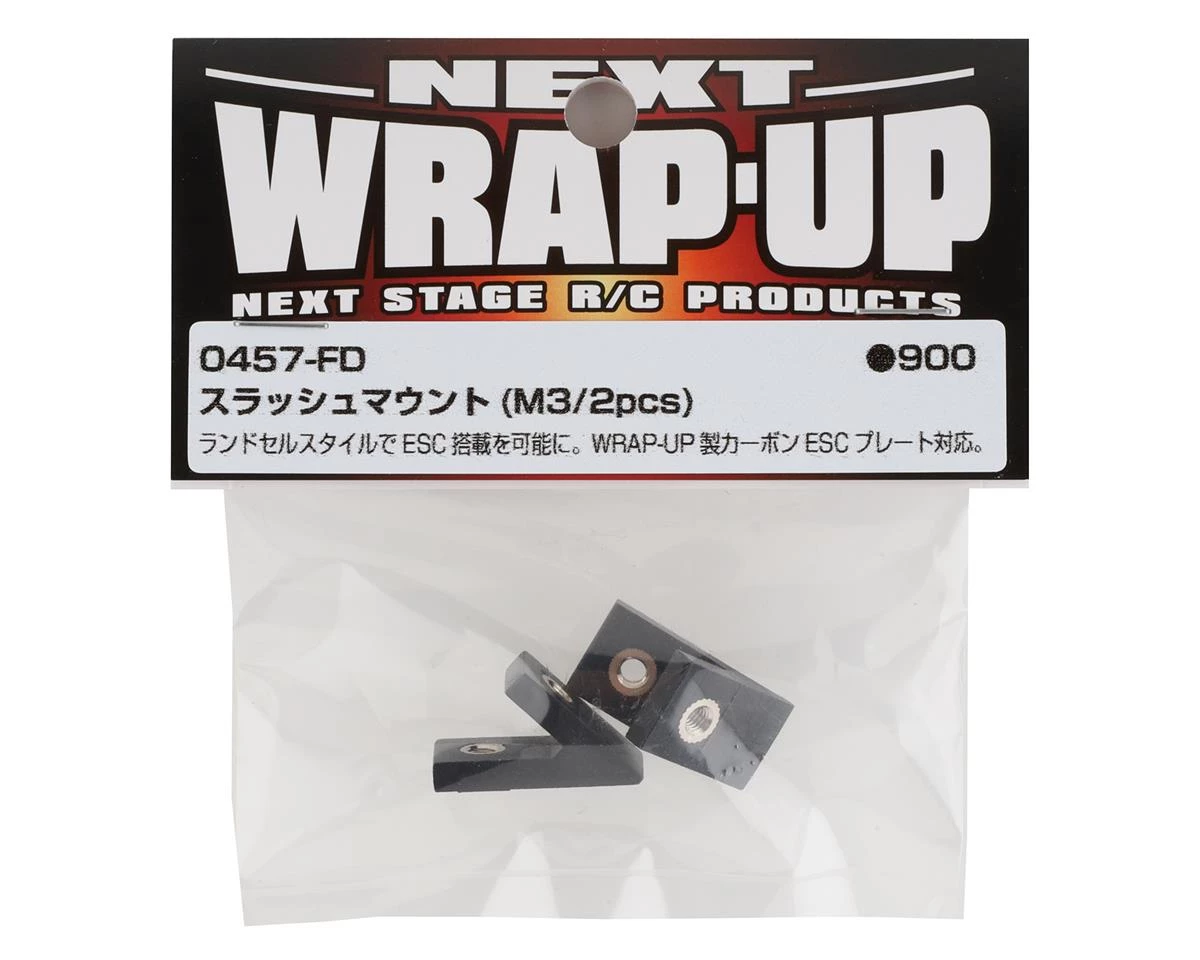 WRAP-UP NEXTÂ 3mm Slash Mounts. These optional slash mounts are designed to work with the WRAP-UP NEXT Carbon ESC Plate (WUN-0397-FD). Using these will allow your ESC plate to be angled when mounting to the rear of your drift chassis. Package includes two slash mounts.