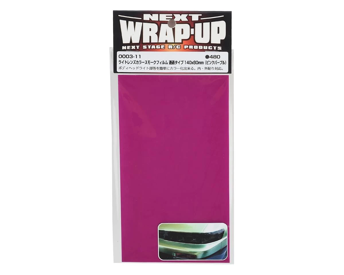 This is a WRAP-UP NEXT Pink Purple 140x80mm Color Lens Tint Film. Use these transparent smoke-like films to add depth and color accents to your RC drift application. Use them on or around headlights to add pops of color or to add further dimension to the features of the body. The film can be applied internally or externally and measures 5.5×3.1in.Â
