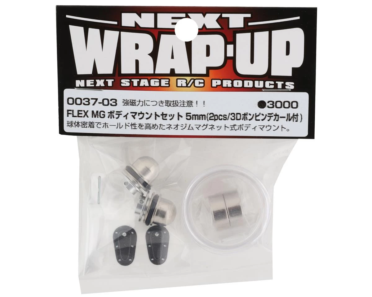The WRAP-UP NEXTÂ FLEX MG Magnetic Front Body Mount Set is a great option to add scale presence to your ride. Using these will add a cleaner look when compared to body clips. This set includes scale hood latch decals to cover the mounting point.