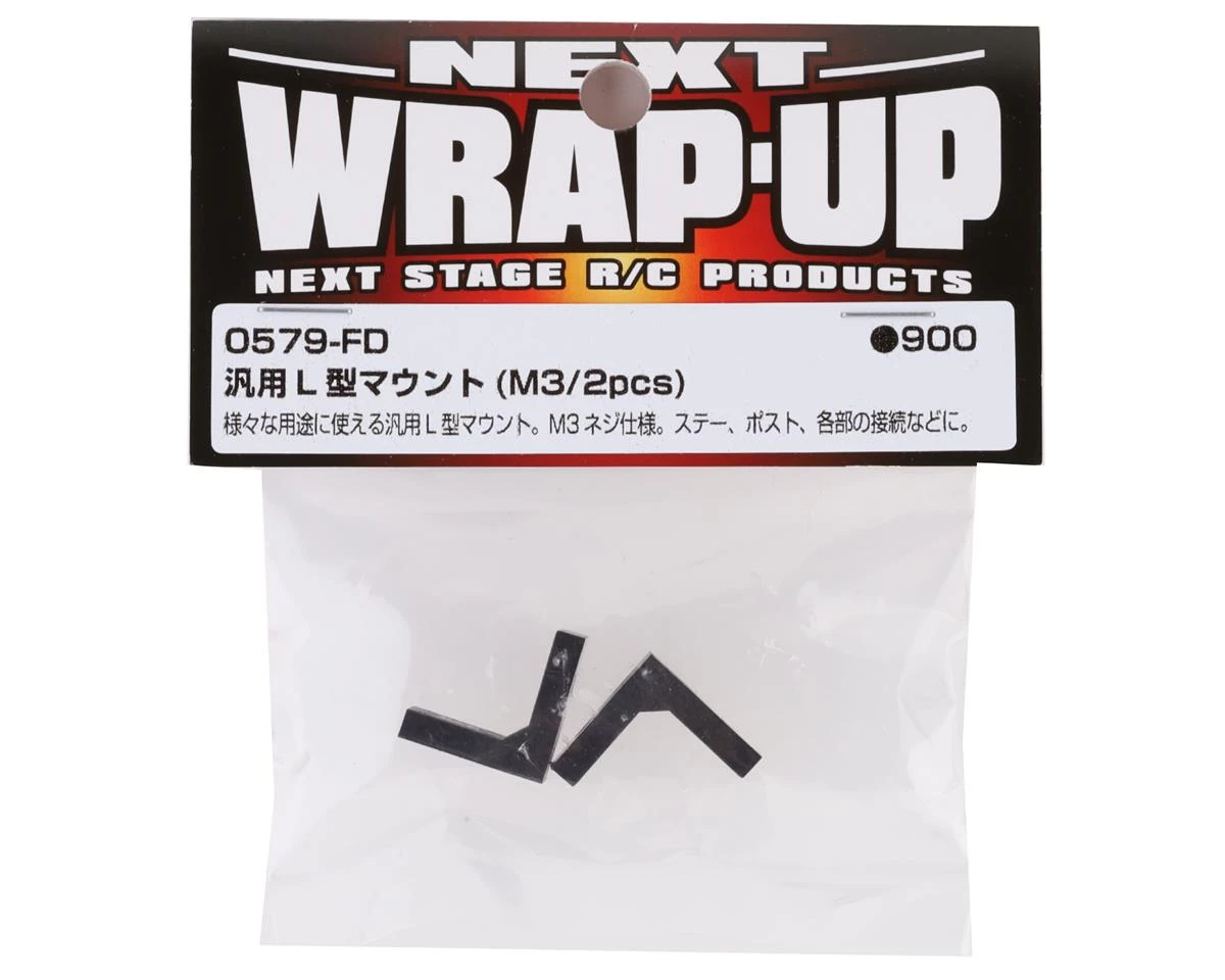 WRAP-UP NEXT General Purpose L-Shaped Mount. These L-shaped brackets can be used for various purposes including mounting scale accessories, bracing and more. Featuring two 3mm threaded inserts for attachment. Package includes two L-shaped mounts.