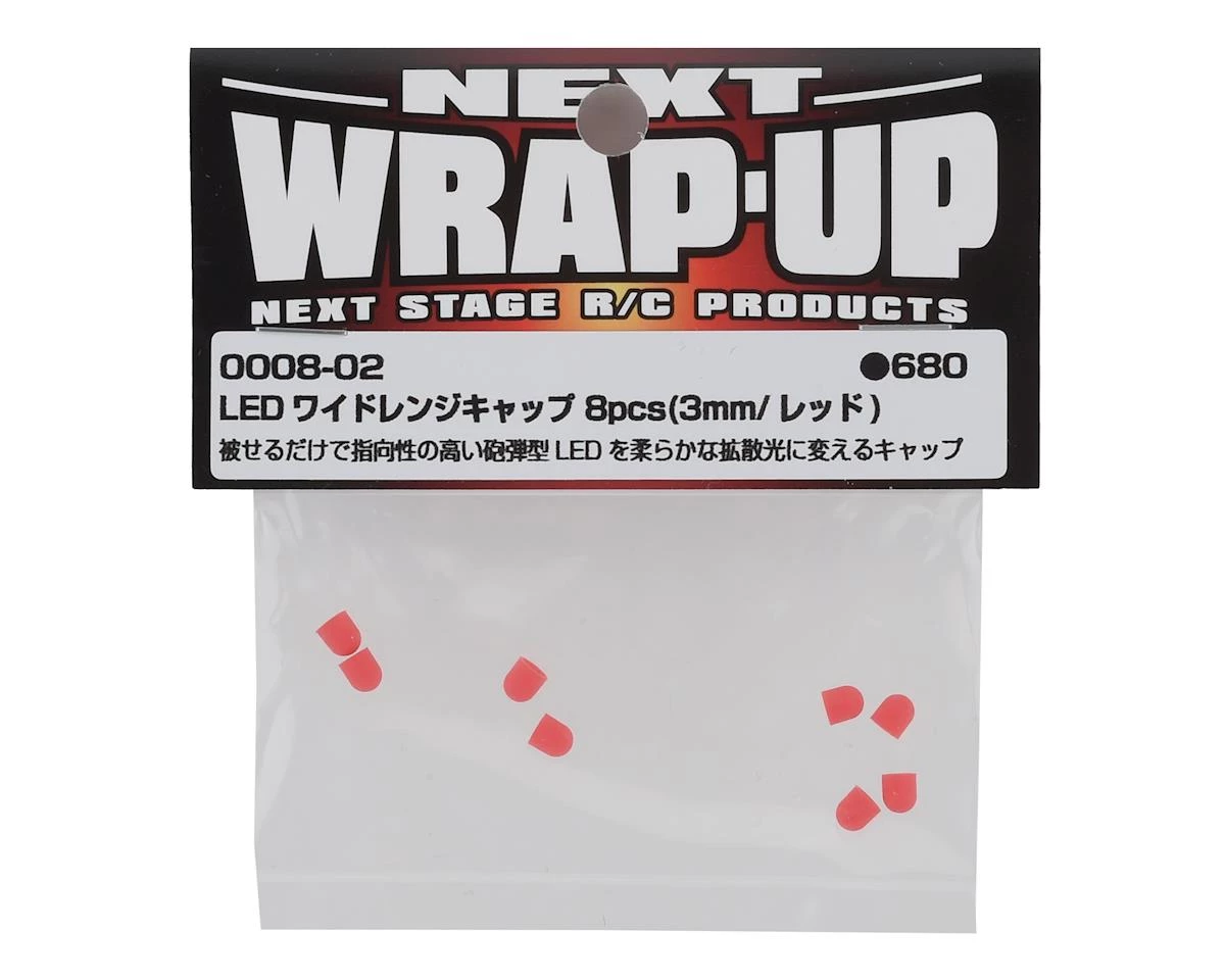 This is a pack of eight WRAP-UP NEXT Red 3mm LED Wide Range Caps. This is a silicon cap that can be applied to installed taillight and headlight LEDs to change the unconventional, direct light to a diffused, more realistic glow.