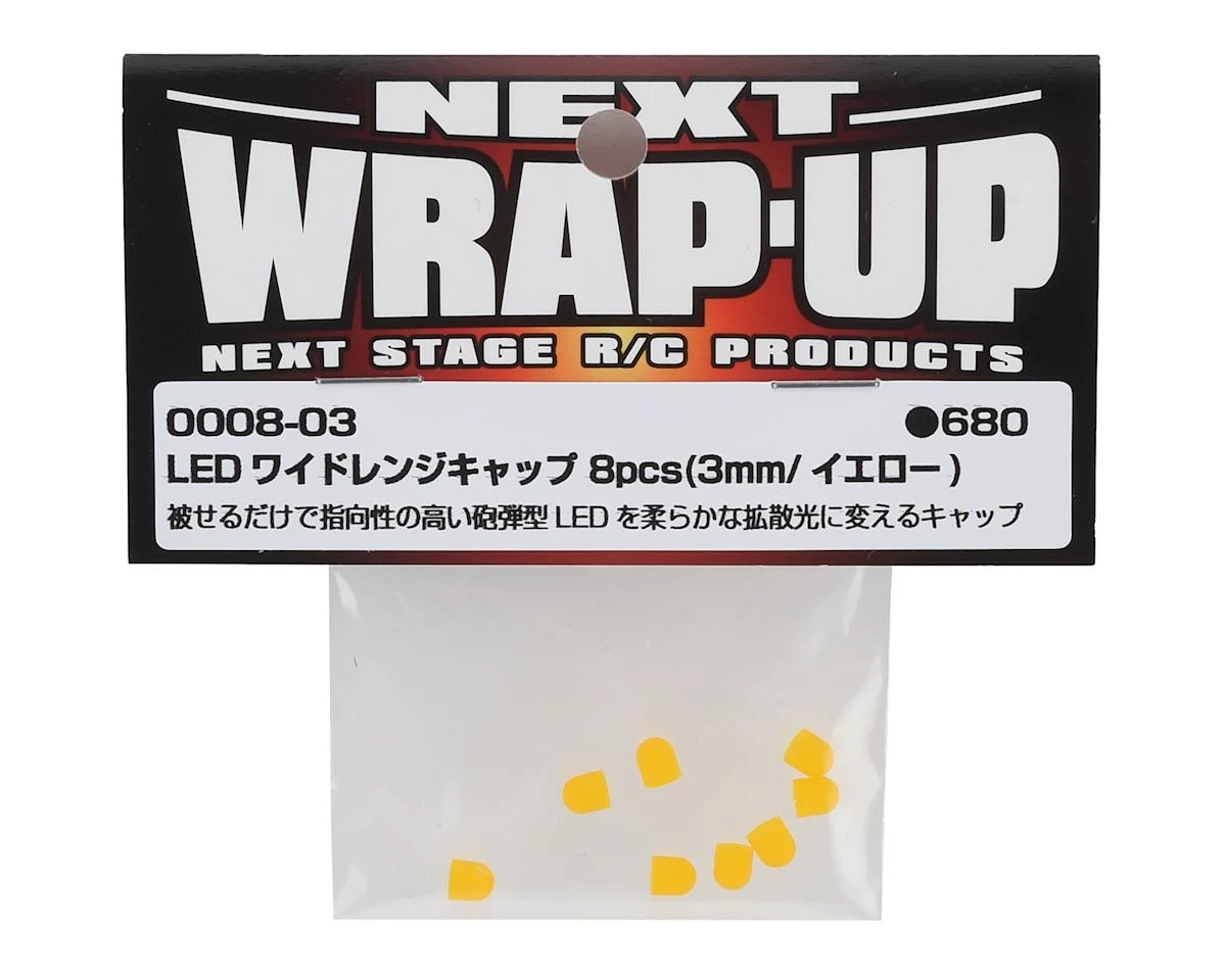 This is a pack of eight WRAP-UP NEXT Yellow 3mm LED Wide Range Caps. This is a silicon cap that can be applied to installed taillight and headlight LEDs to change the unconventional, direct light to a diffused, more realistic glow.