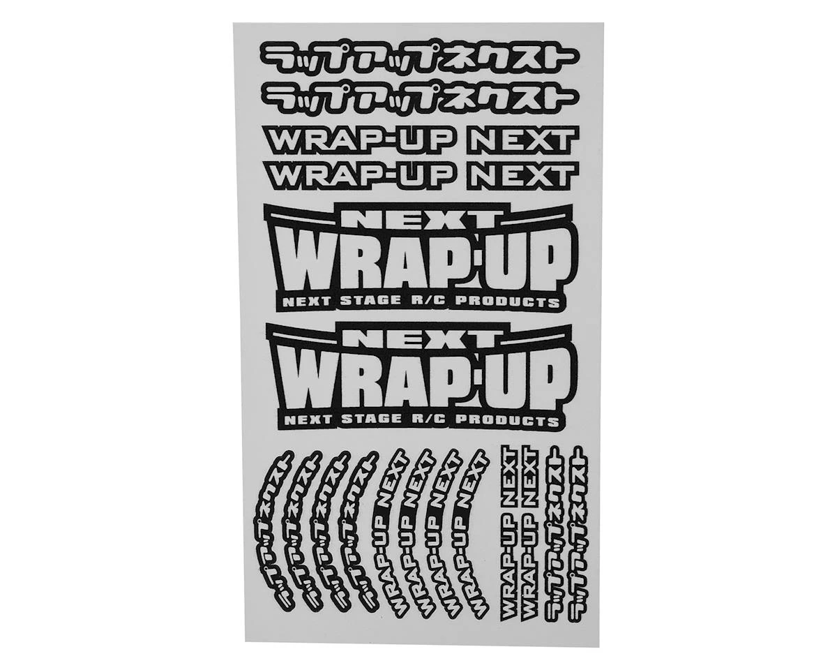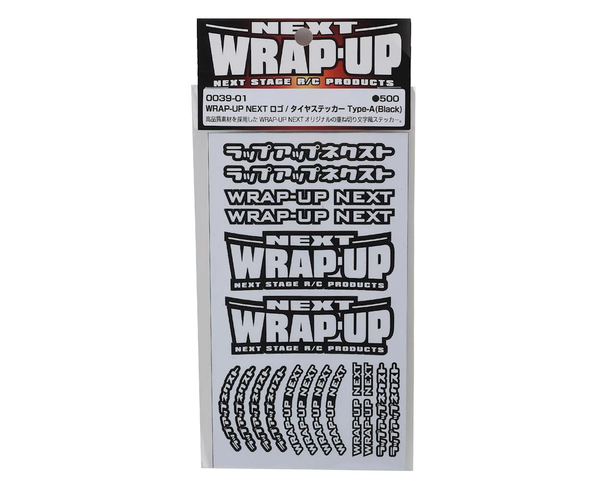 This is a WRAP-UP NEXT Blue 140x80mm (5.5x3in) Logo Tire Sticker Type-A, a detailed decal to add some flair to RC drift tires.