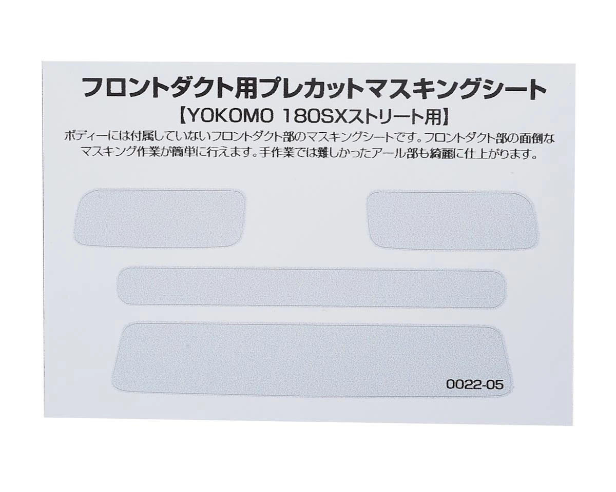 This is a WRAP-UP NEXT Yokomo 180SX Street Precut Mask Sheet for the Front Ducts of RC drift car bodies. Apply these precise masks to the ducts of the RC drift body of your choice to create clean negative space to apply other decals and scale effects.Â