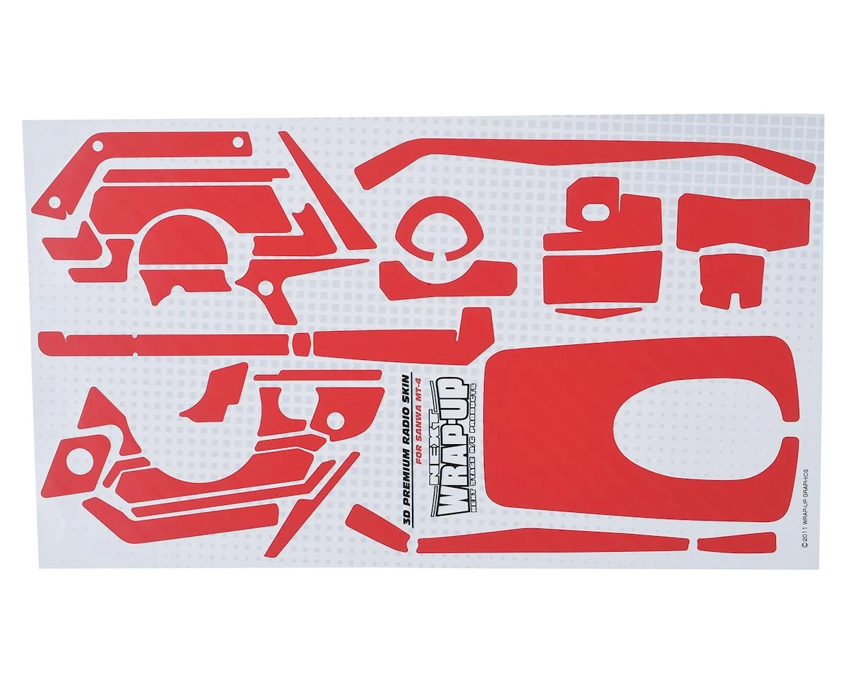 This is a WRAP-UP NEXT REAL 3D Premium MT-4Â Transmitter Red Carbon Skin, a textured set of decals to add depth and style to your boring old radio. This decal sheet has 3D effects for a greater depth of detail, giving the skin a quality texture.