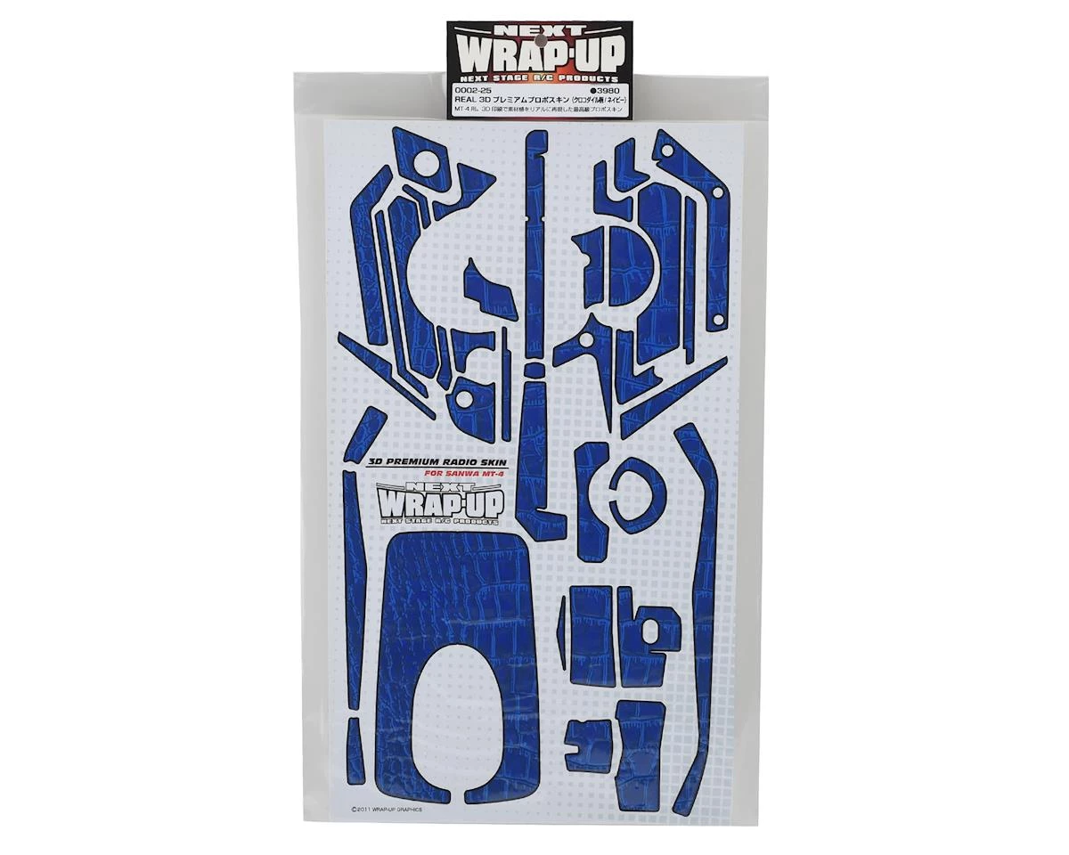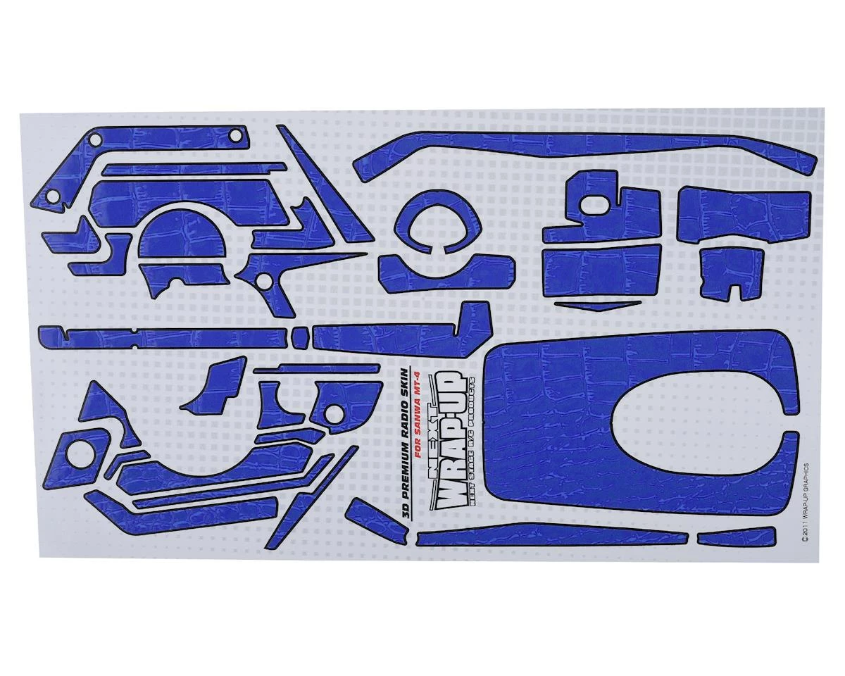 This is a WRAP-UP NEXT REAL 3D Premium MT-4 Transmitter Navy Crocodile Skin, a textured set of decals to add depth and style to your boring old radio. This decal sheet has 3D effects for a greater depth of detail, making the crocodile skin texture seem alive.
