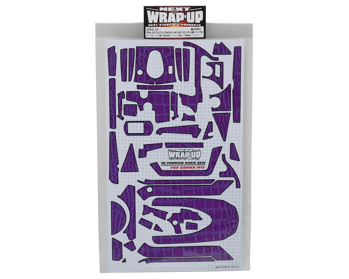 This is a WRAP-UP NEXT REAL 3D Premium M12 Transmitter Purple Crocodile Skin, a textured set of decals to add depth and style to your boring old radio. This decal sheet has 3D effects for a greater depth of detail, making the crocodile skin texture seem alive.