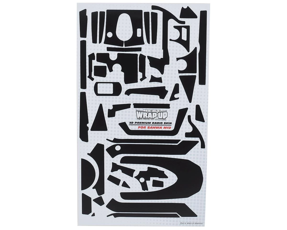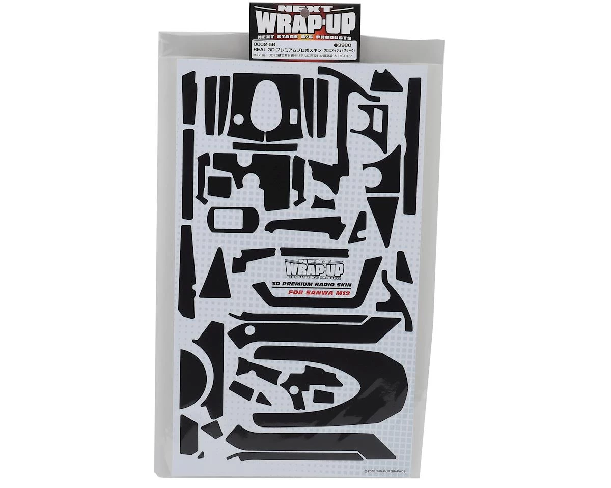 This is a WRAP-UP NEXT REAL 3D Premium M12 Transmitter Black Cross Mesh Skin, a textured set of decals to add depth and style to your boring old radio. This decal sheet has 3D effects for a greater depth of detail, giving the skin a quality texture.