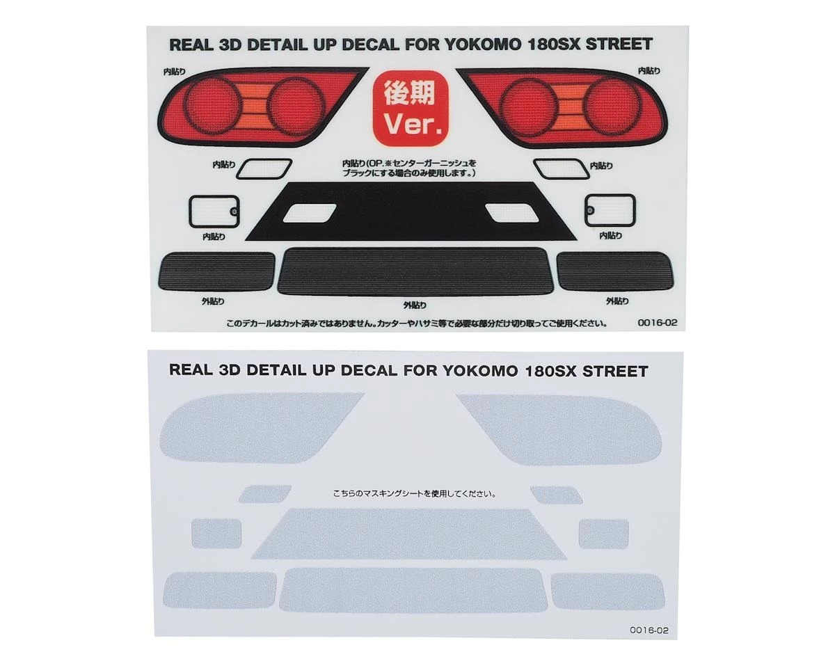 This is a WRAP-UP NEXT REAL 3D YOKOMO 180SX Street Detail Up Decal Style 2 – Kouki, a decal to add realism to your rc drift set up. This decal sheet has 3D effects, making them lightly textured to add further depth and details, especially when used with installed LEDS (not included). This set realistically reproduces the unevenness of the grille and the lens cut of the light, effects that could not be expressed with normal decals, to achieve the highest reality. Comes with pre-cut special masking to make application simple.