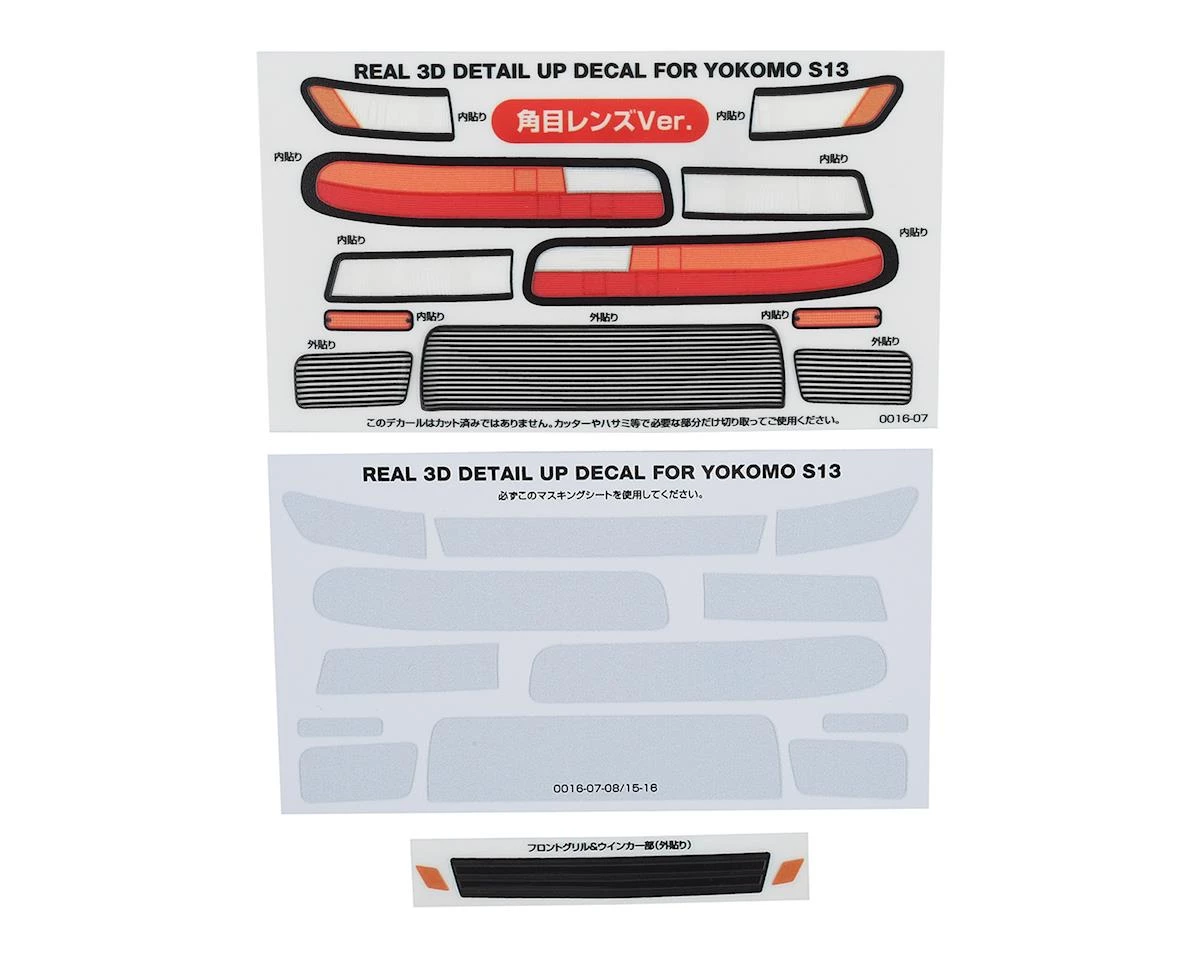 This is a WRAP-UP NEXT REAL 3D YOKOMO S13 SILVIA Detail Up Decal Projector Lenses, a decal to add realism to your rc drift set up. This decal sheet has 3D effects, making them lightly textured to add further depth and details, especially when used with installed LEDS (not included). This set realistically reproduces the unevenness of the grille and the lens cut of the light, effects that could not be expressed with normal decals, to achieve the highest reality. Comes with pre-cut special masking to make application simple.