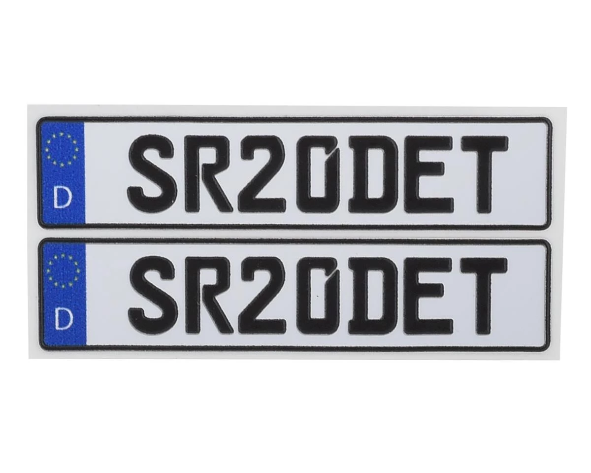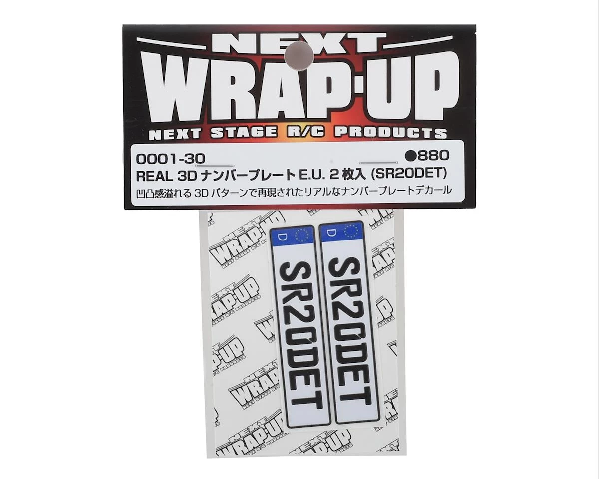This is a set of two WRAP-UP NEXT REAL 3D E.U. License Plates with SR20DET text, realistic textured decals of a Euro style license plate that can add scale depth to your RC drift car. The decal has been printed with 3D effects, giving it dimensions and details to the finished product. The license plates dimensions are 11x50mm (.5x2in).