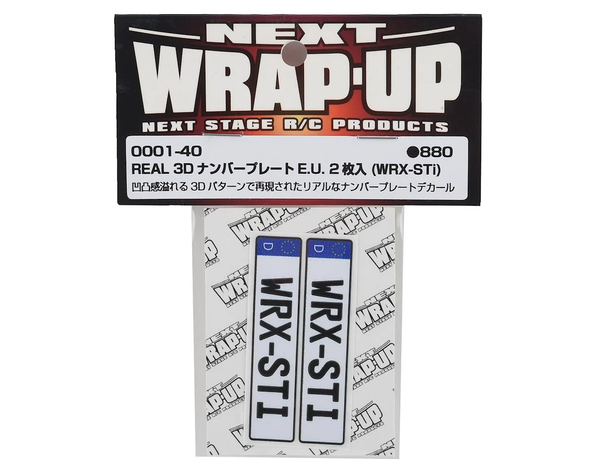 This is a set of two WRAP-UP NEXT REAL 3D E.U. License Plates with WRX-STi text, realistic textured decals of a Euro style license plate that can add scale depth to your RC drift car. The decal has been printed with 3D effects, giving it dimensions and details to the finished product. The license plates dimensions are 11x50mm (.5x2in).