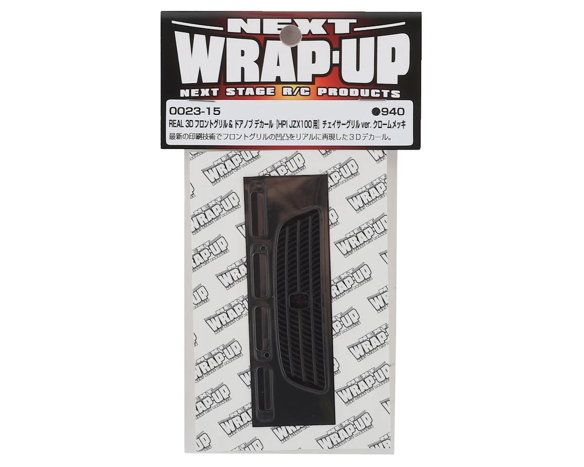 This is a WRAP-UP NEXT REAL 3D HPI JZX-100 CHAISER Chrome Front Grill & Door Handle Decal Set, a textured pack of decals to add realism to the grill and handles of your RC drift car. This set realistically reproduces the unevenness of the grille and the handles, effects that could not be expressed with normal decals, to achieve the highest reality. Comes with pre-cut special masking to make application simple.
