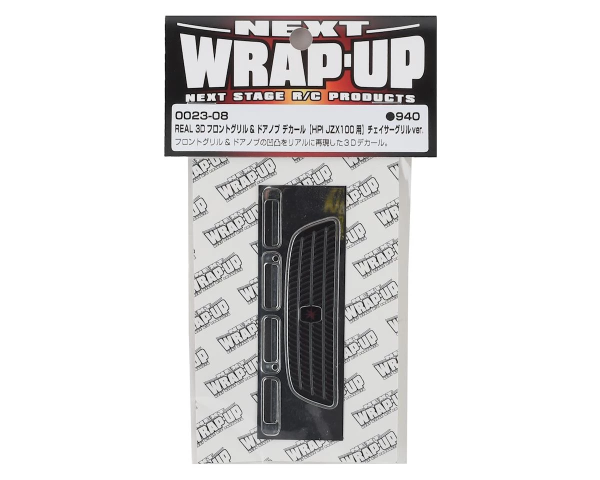 This is a WRAP-UP NEXT REAL 3D HPI JZX-100 CHAISER Front Grill & Door Handle Decal Set, a textured pack of decals to add realism to the grill and handles of your RC drift car. This set realistically reproduces the unevenness of the grille and the handles, effects that could not be expressed with normal decals, to achieve the highest reality. Comes with pre-cut special masking to make application simple.