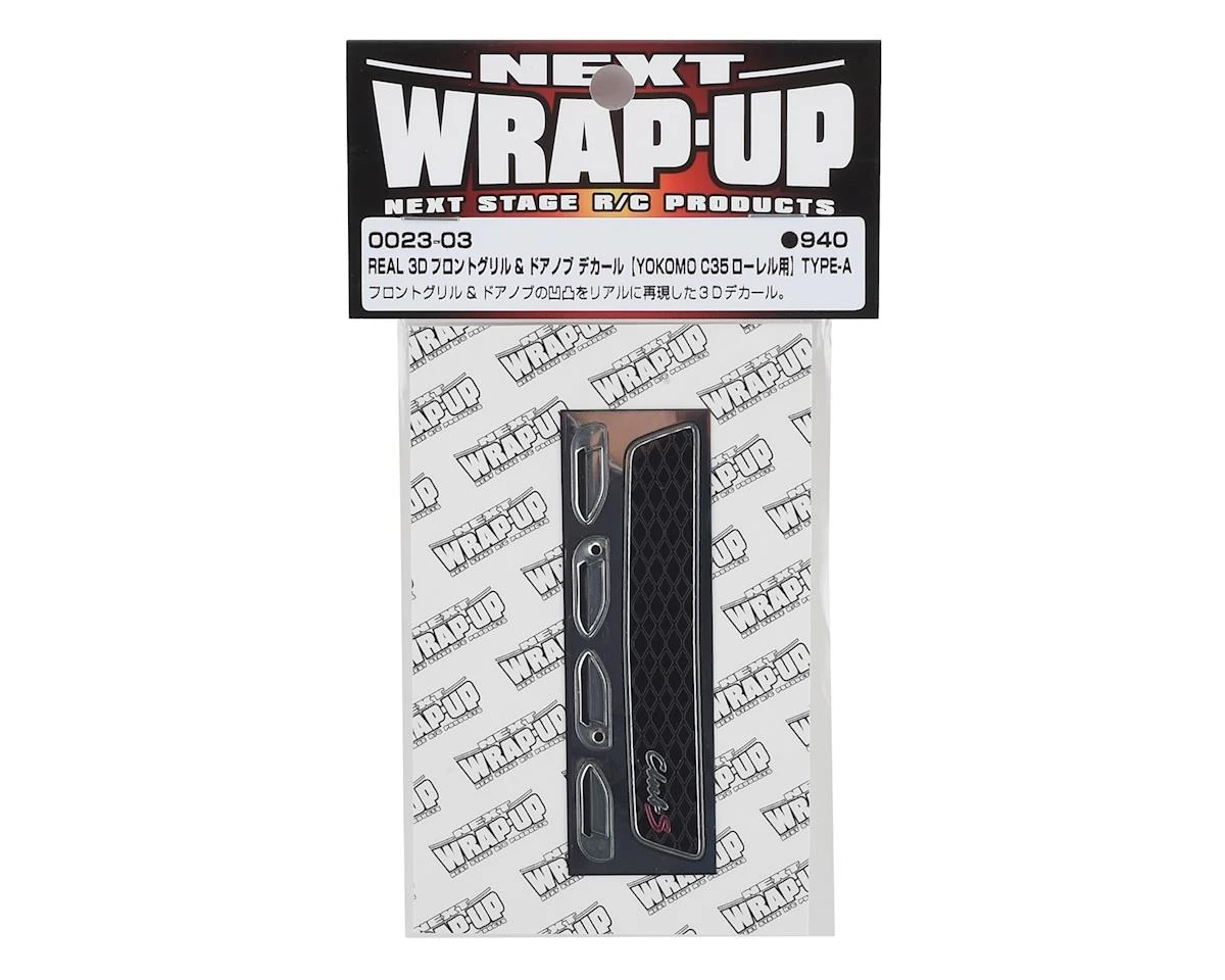 This is a WRAP-UP NEXT REAL 3D YOKOMO C35 LAWREL Type A Front Grill & Door Handle Decal, a textured set of decals to add realism to the grill and handles of your RC drift car. This decal sheet has 3D effects for a greater depth of detail. These decals do not require masking for application. Simply applying to the exterior of the body gives a smooth and realistic finish.Â