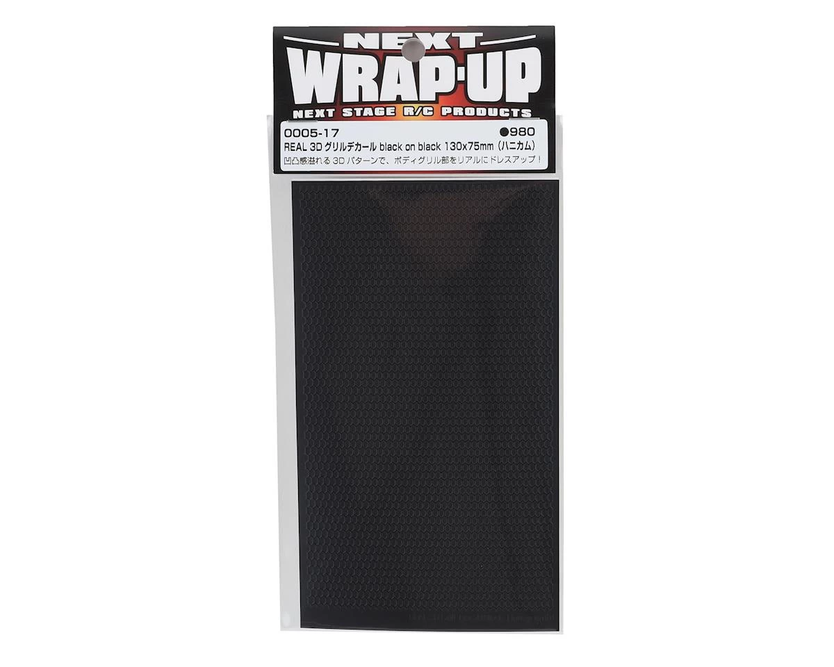 This is a WRAP-UP NEXT Black 130x75mm (5x3in) REAL 3D Black on Black Honeycomb Grill Decal, a textured decal to add realism to the grill of your RC drift car. This decal sheet has 3D effects for a greater depth of detail. Simply mask off the grill before painting, cut the decal to fit the desired grill and then apply to the inside of your drift body.Â