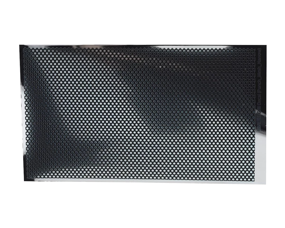 This is a WRAP-UP NEXT Silver 130x75mm (5x3in) REAL 3D Punch-Mesh-Thin Grill Decal, a textured set of decals to add realism to the grill of your RC drift car. This decal sheet has 3D effects for a greater depth of detail. Simply mask off the grill before painting, cut the decal to fit the desired grill and then apply to the inside of your drift body.