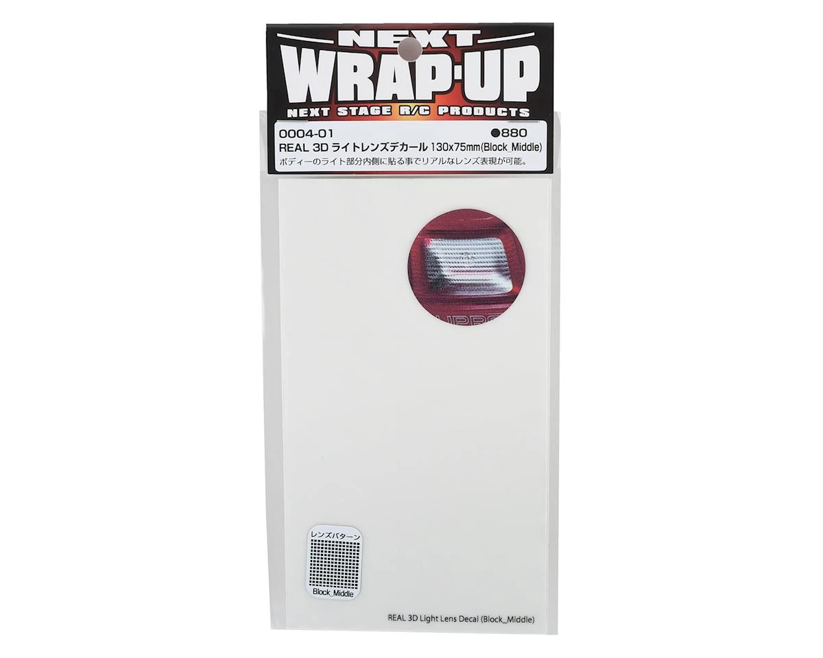 This is a WRAP-UP NEXT REAL 3D 130x75mm (5x3in) Block-Middle Clear Lens Decal, a decal to add realism to your rc drift set ups lights. This decal sheet has 3D effects, making them lightly textured to add further depth and details, especially when used with installed LEDS (not included). The decal is easy to cut to size and add to your body’s tail lights. Simple cut the decal in shape and place on the inside of the body for the best results.