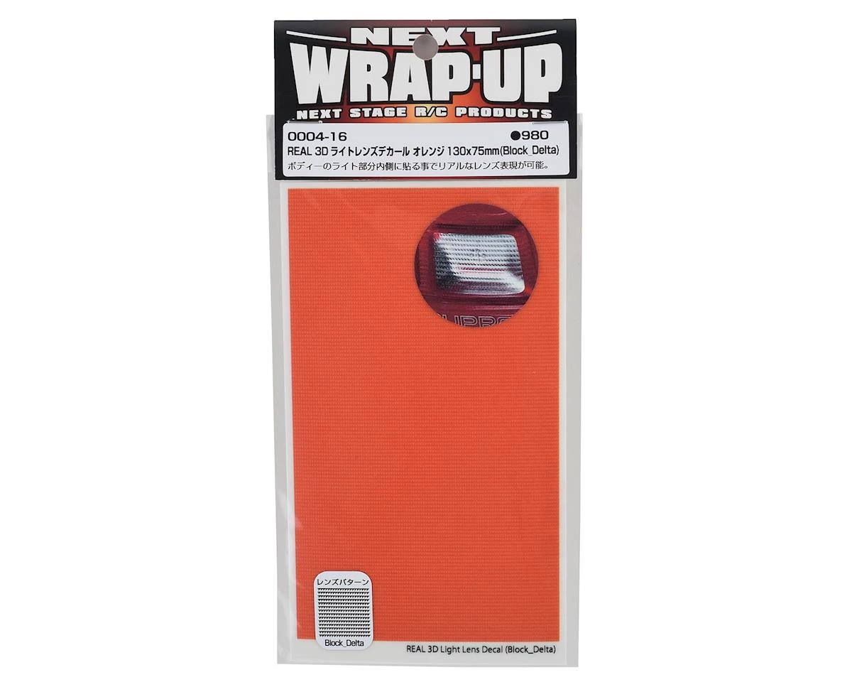 This is a WRAP-UP NEXT REAL 3D 130x75mm (5x3in) Block-Delta Orange Lens Decal, a decal to add realism to your rc drift set ups lights. This decal sheet has 3D effects, making them lightly textured to add further depth and details, especially when used with installed LEDS (not included). The decal is easy to cut to size and add to your body’s tail lights. Simple cut the decal in shape and place on the inside of the body for the best results.