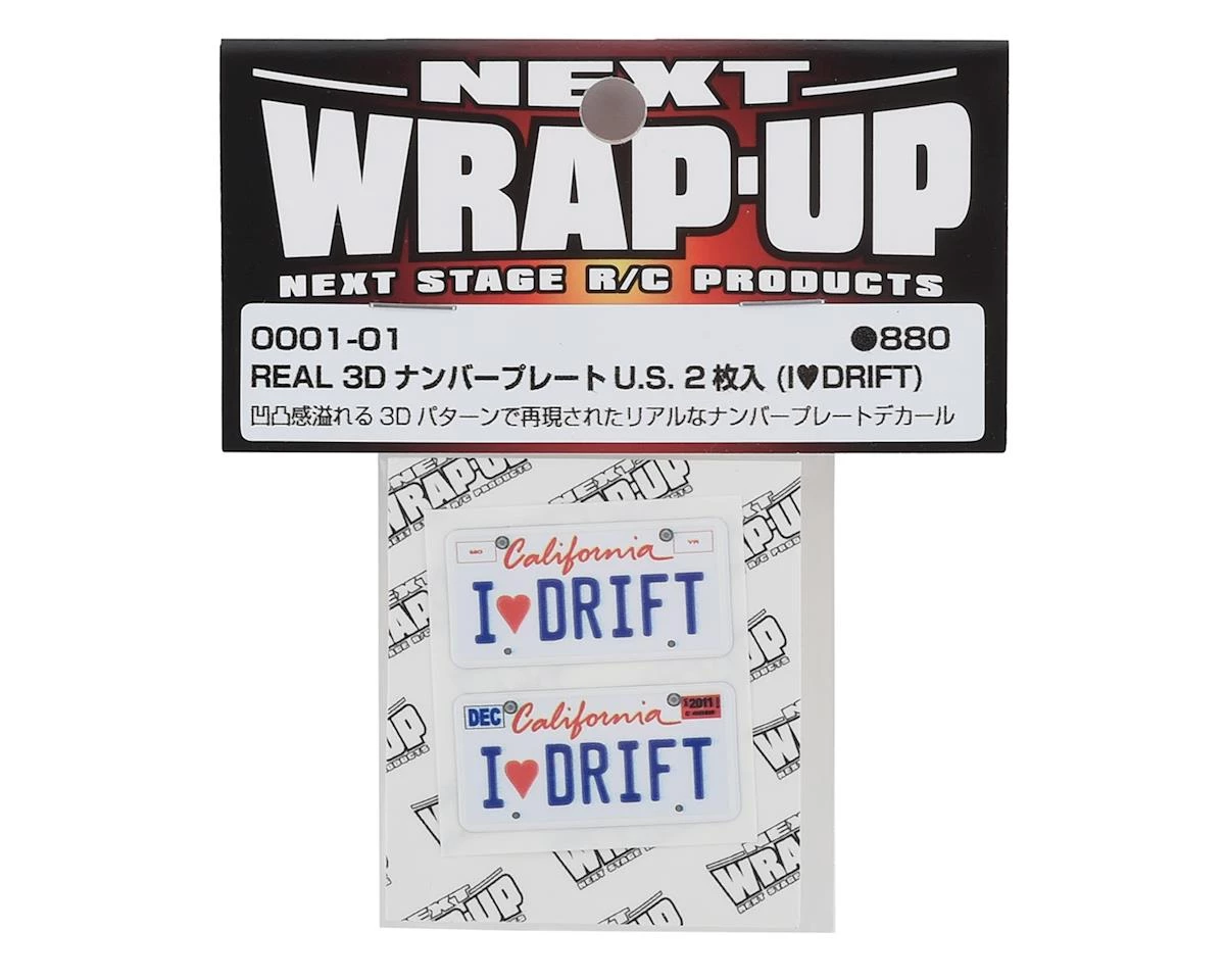 This is a set of two WRAP-UP NEXT REAL 3D U.S. License Plates with I LOVE SILVIA text, realistic textured decals of an American style license plate that can add scale depth to your RC drift car. The decal has been printed with 3D effects, giving it dimensions and details to the finished product. The license plates dimensions are 11x50mm (.5x2in).