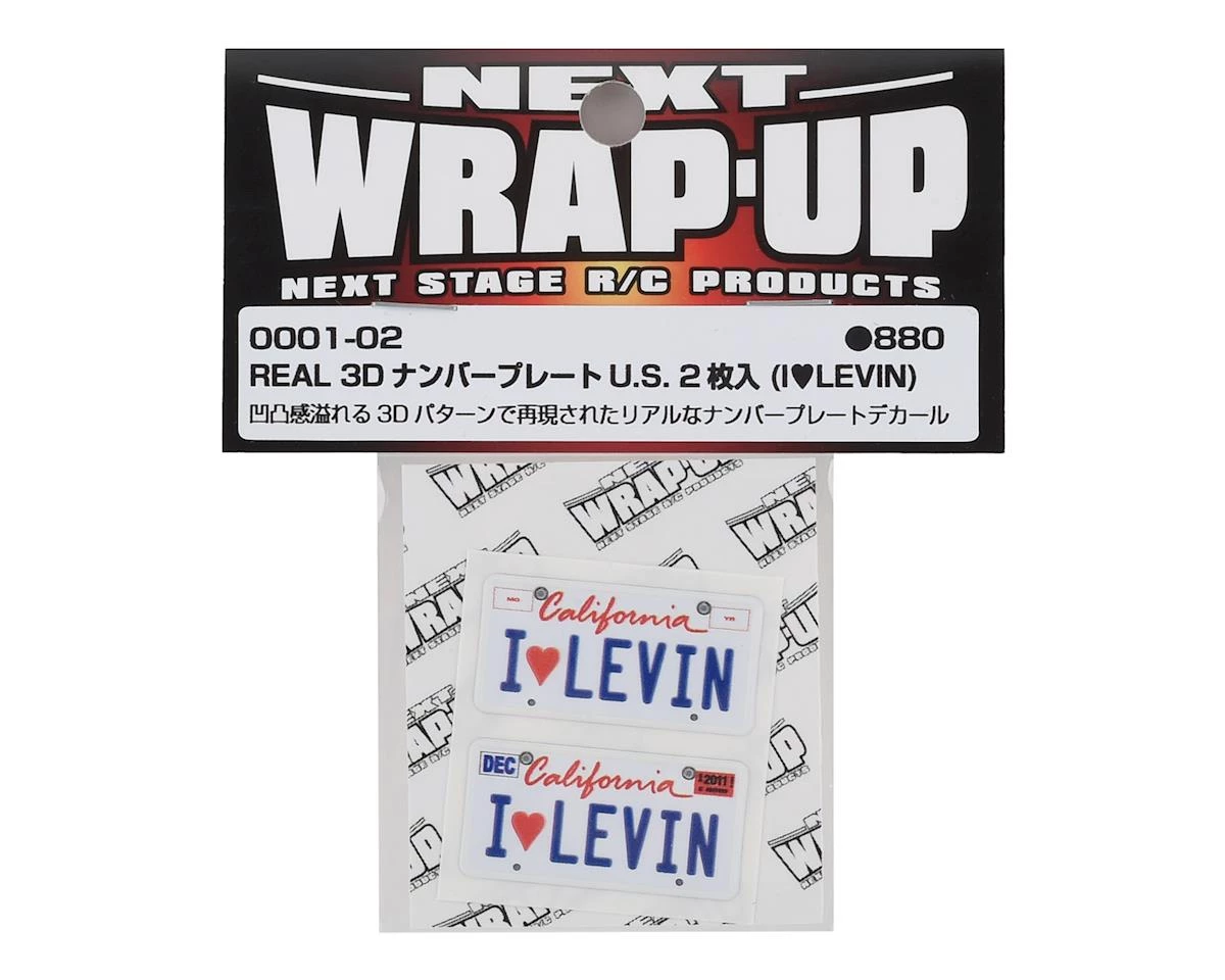 This is a set of two WRAP-UP NEXT REAL 3D U.S. License Plates with I LOVE LEVIN text, realistic textured decals of an American style license plate that can add scale depth to your RC drift car. The decal has been printed with 3D effects, giving it dimensions and details to the finished product. The license plates dimensions are 11x50mm (.5x2in).