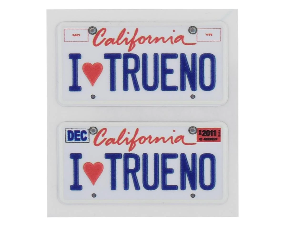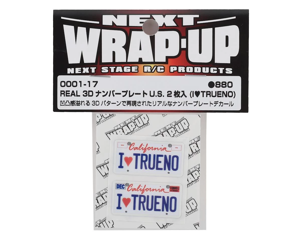 This is a set of two WRAP-UP NEXT REAL 3D U.S. License Plates with I LOVE TRUENO text, realistic textured decals of an American style license plate that can add scale depth to your RC drift car. The decal has been printed with 3D effects, giving it dimensions and details to the finished product. The license plates dimensions are 11x50mm (.5x2in).