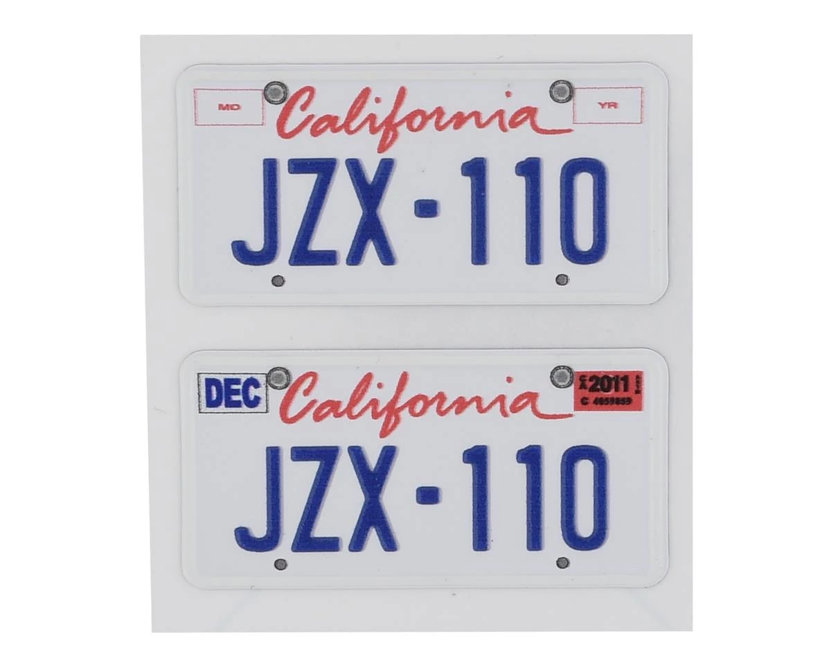 This is a set of two WRAP-UP NEXT REAL 3D U.S. License Plates with JZX-110 text, realistic textured decals of an American style license plate that can add scale depth to your RC drift car. The decal has been printed with 3D effects, giving it dimensions and details to the finished product. The license plates dimensions are 11x50mm (.5x2in).