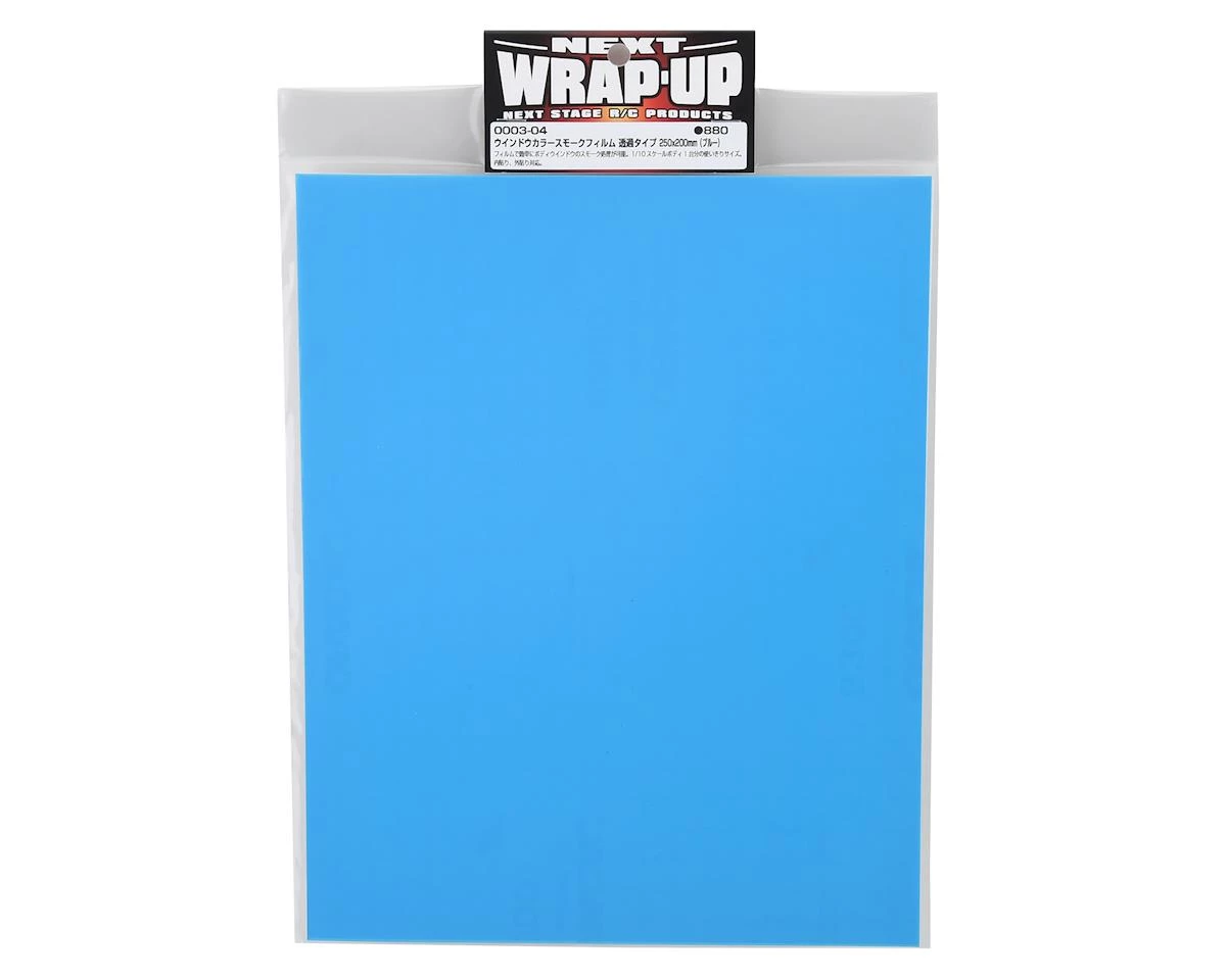 This is a WRAP-UP NEXT Blue 250x200mm (7.8×9.8in) Window Tint Film, a decal like film that can be applied inside or outside of the desired drift body to add extra depth and color accents. As an alternative to painting, use this film over windows or in various places around lights and other features to add dimension and detail.Â