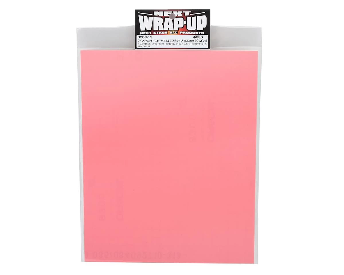 This is a WRAP-UP NEXT Pearl Pink 250x200mm (7.8×9.8in) Window Tint Film, a decal like film that can be applied inside or outside of the desired drift body to add extra depth and color accents. As an alternative to painting, use this film over windows or in various places around lights and other features to add dimension and detail.